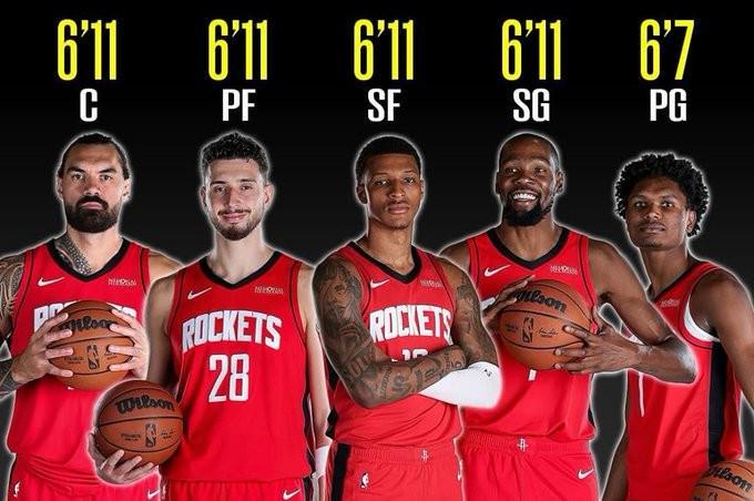 我看着名单就想笑,阿门-汤普森被放到控球位置,最矮的是2.01米,其他四人注册身高都写着2.11米,凯文-杜兰特、小贾巴里-史密斯、阿尔佩伦-申京与史蒂文-亚当斯组成的五大听起来像一支大学测量队。这不是NBA历史书上常见的传统阵容,乌度卡是在赌身体尺寸能解决速度和创造力的问题。